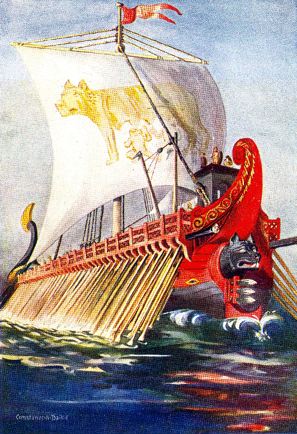 Well, when battle lines were drawn, it was clear and apparent that Vatinius was outmatched and outnumbered, for Octavius possessed more ships, and them being warships, more power. Vatinius’s one upperhand was his flagship, a quinquereme (a ship with five oarsmen per row, compared to a trireme for example with its three oarsmen). Octavius’s flagship was a quadrireme (four oarsmen per row), a mighty ship yet still lesser to the grandest of the time, the quinquereme.